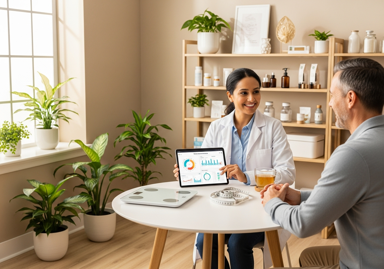 At Ash Pharmacy, we recognise that relying solely on BMI might lead to a misinterpretation of an individual’s metabolic health. Our modern approach incorporates various indicators, such as blood sugar levels, cholesterol profiles, blood pressure, and even lifestyle factors like sleep and stress. By moving beyond BMI, we ensure that each client receives personalised advice that matches their unique health needs, rather than a one‑size‑fits‑all solution.